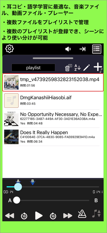 耳コピ・語学学習に最適な、音楽ファイル、動画ファイルの再生プレーヤー