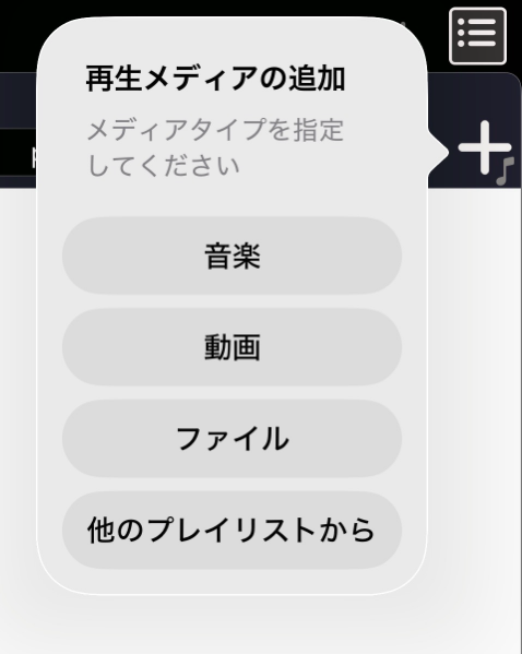 複数のプレイリストがある場合、他のプレイリストに登録されているメディアを現在のプレイリストに追加することができます。
