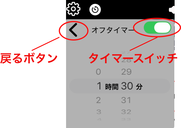 OFF Timer ボタンをタップすると、OFF状態になります。